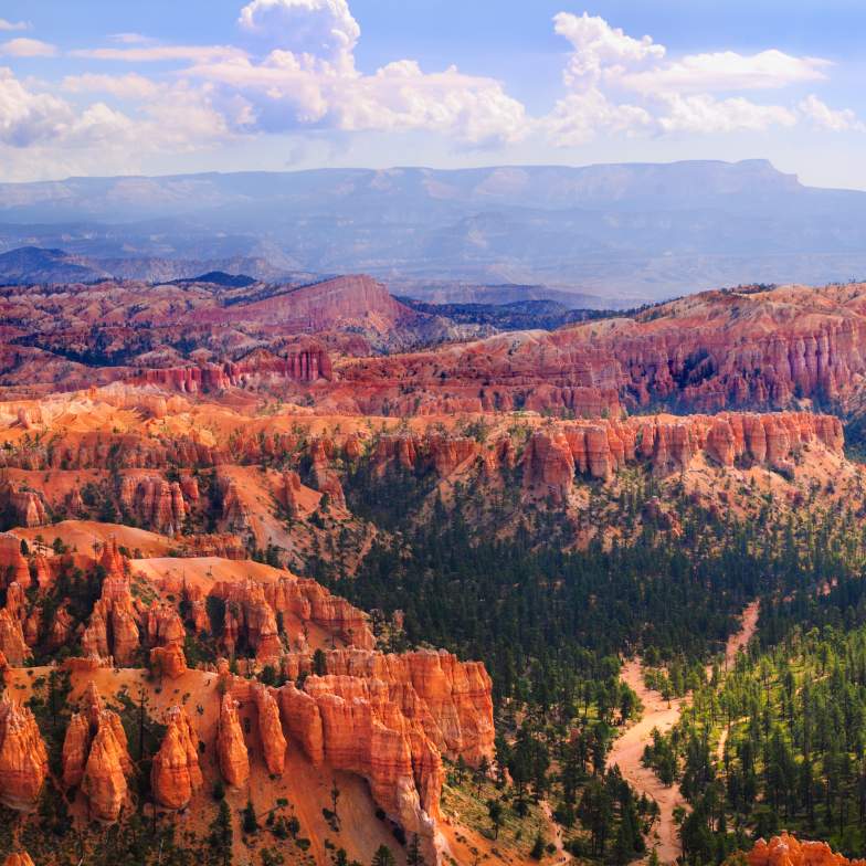 Zion National Park’s towering cream, pink and red cliffs are your first stop today as you journey towards the enchanting landscapes of Bryce Canyon.