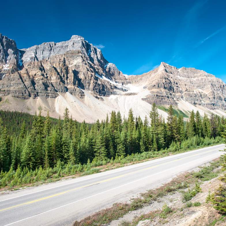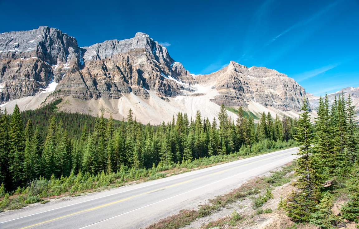 Get a glimpse of Mount Robson, the highest peak in the Canadian Rockies, before you enter Alberta and Jasper National Park.