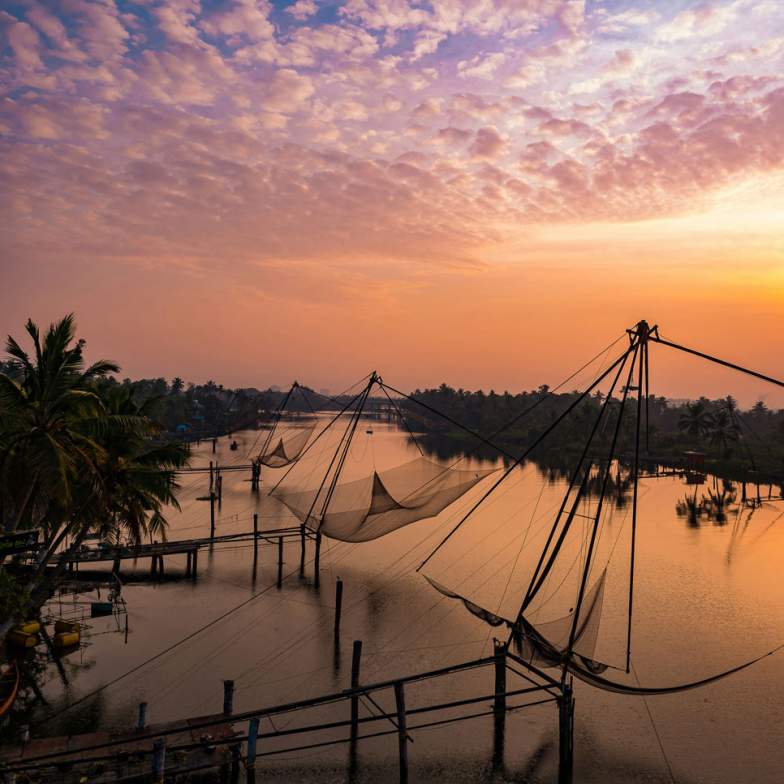 Nestled along Kerala’s lush Malabar Coast, Kochi is a captivating blend of colonial charm and vibrant Indian culture. Wander through the historic Fort Kochi with its Portuguese churches, Chinese fishing nets, and spice-scented streets. This is an unforgettable gateway to South India. Highlights today including a walking tour following the spice trail of Fort Kochi, a tour of the city which will take you back to the 14th century, and a cooking demonstration with an Indian family. (B)